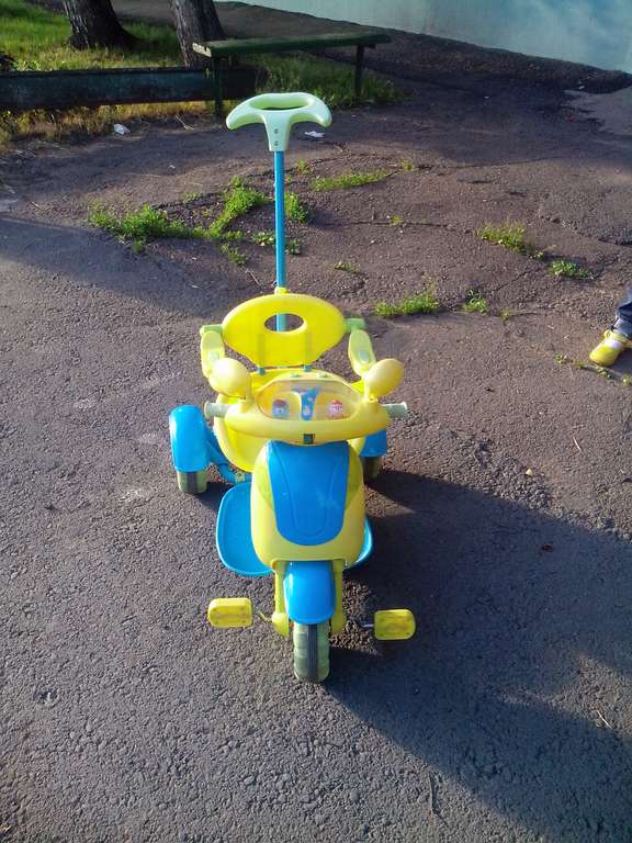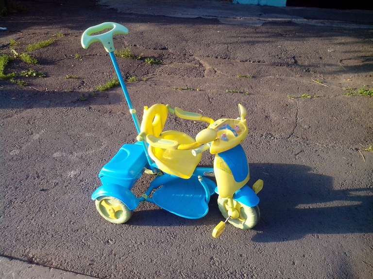 Срочно продам детский велосипед с музыкой из "смешариков", огоньками, съемной подножкой, багажником с крышкой, зонтиком и ручкой управления для взрослого. Цена 1000 руб. Тел:47172