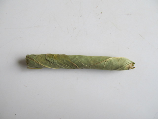 Скручивание: листья скручивают между ладонями рук в небольшие веретенообразные колбаски размером примерно в полсосиски до тех пор, пока они не потемнеют от выступившего сока.