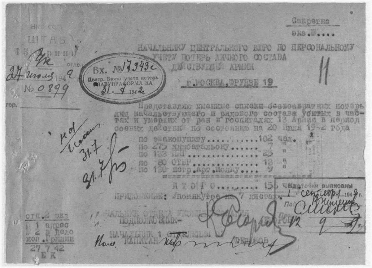 Информация из донесения о безвозвратных потерях