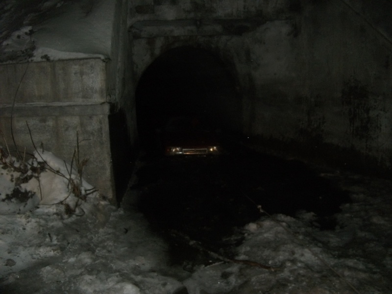 У нас на вокзале мужики повадились чистить сток воды в трубе, вследствие чего вышеупомянутое сооружение было проезжабельно. Проехав там вчера с утра два раза в обе стороны, в обед, однако, уже пришлось устроить заплыв на короткую дистанцию, ввиду чего, с обеда уже поехал вокруг. Всё же вечером, утаивая в недрах сознания суровую реальность, упоённый надеждой на свободную от воды трубу, всё-таки поехал проверить состояние последней, чем черт не шутит... Собственно, я и не сильно удивился, застав около и в данном гидротехническом сооружении шоу программу "Все за мной, я знаю короткую дорогу"