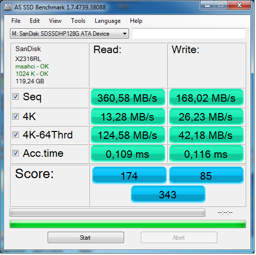 Получается, что все показатели довольно близки. Но если приглядеться, то выиигрывает 1024 сектор и за ним идет созданый по дефолту. Оставил пока 1024, буду пробовать ставить на него винду