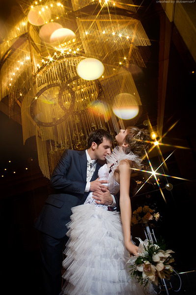 Комментарий к файлу: Самый распространенный свет в правильной свадебной фотографии. Акцентируются объемы на лице, лицо кажется стойнее, чем на самом деле, т.к. теневая сторона визуально становится уже... В общем хороший спокойный и красивый свет.