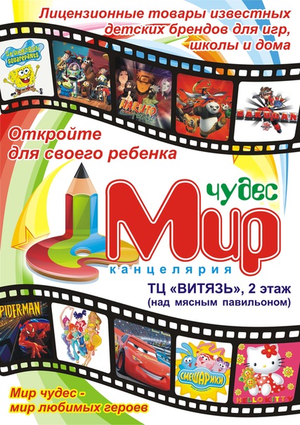 Впервые в Юрге! Лицензионная канцелярия известных детских брендов "Смешарики", "Винкс","Тачки","Человек-паук","Трансформеры","ХэллоКитти" и другие! Широкий выбор:ручки, карандаши,тетради,альбомы,линейки,тарелки,йо-йо,пеналы,фломастеры, цветная бумага, дневники и МНОГО ВСЕГО ДРУГОГО!!! ТЦ Витязь, 2 этаж (над мясным павильоном).
