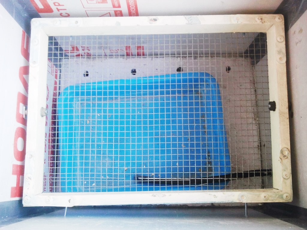 Также убрали все направляющие под сеткой, на них очень много помета задерживается. Каркас обшили изнутри. Сетка на дне двойная 12.5х25мм, сверху пластиковая(съемная). Планируем содержать от 0 до 30 дней.
