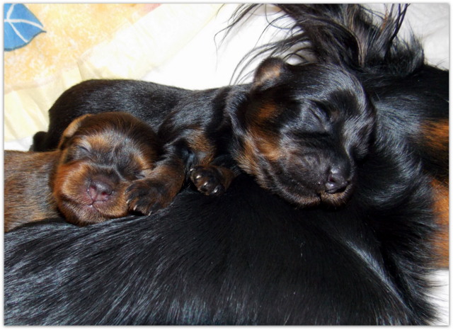 2 девочки (черно- подпалая и рыжая с чернью) и 3 мальчика (черно- подпалые)