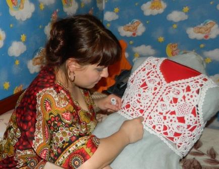 По окончании работы вышейте ротик, пришейте газки.