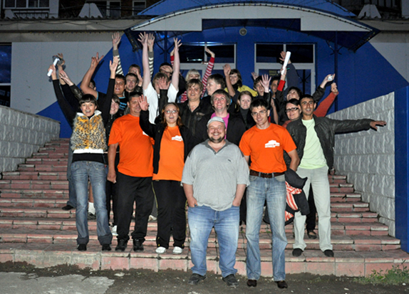 Вот вся комманда Тур де Юр 4-го сбора! (победители впереди в оранжевых футболках и организатор...)