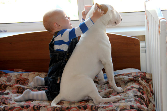 Лично мой сын, когда ему было 1 год и 2 месяца, стоял в коридоре и настойчиво дёргал моего старенького кобеля Афгана за хвост... Бакс минут пять просто рычал, предупреждая... но сын "предупреждения" не понимал и продолжал дёргать... и тут уже мой старый пёс не выдержал и резко долбанул сына клыками, пробив хорошие дырки на локте и рёбрах сына! (Огреблись потом оба и больше друг друга не трогали)...