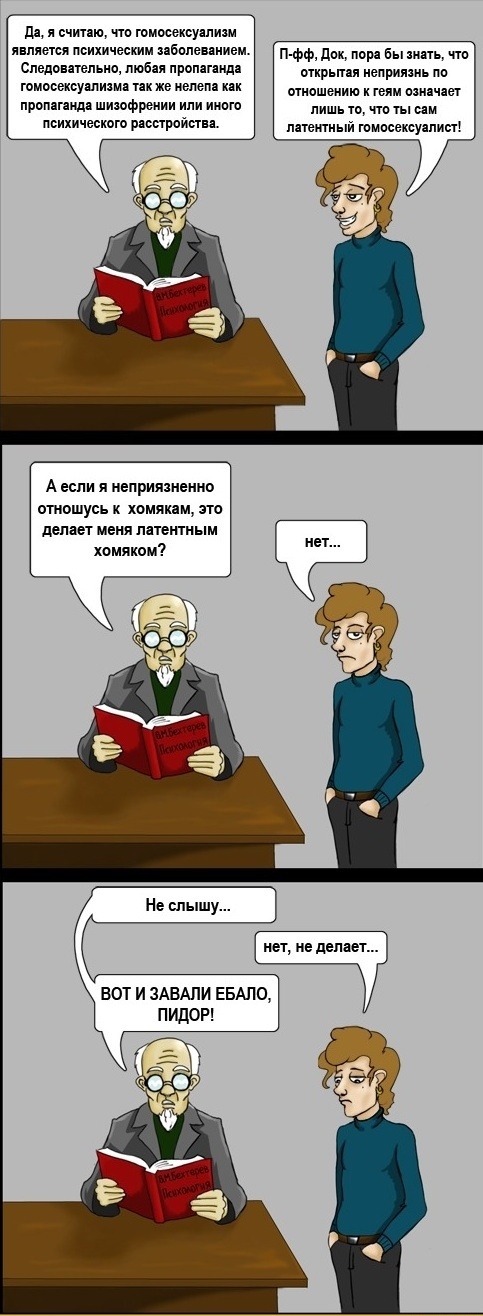 Sergey_TSW, судя по тому, как вы любите всё сводить к теме пидарастии, вы по ходу сам любититель тайком под хвост баловаться. Однако, открыто в этом признаться боитесь, наверное. А самый лучший способ защиты - это, как извесно, нападение, глядишь, и проканает за чистую монету, не так ли? Кто больше всех кричит "Держи вора!" ? Вот, то-то и оно. А вообще, шел бы ты ххх, петушок - золотой гребешек.