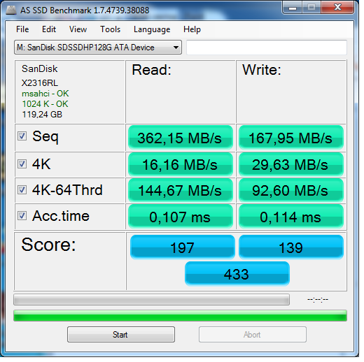 Получается, что все показатели довольно близки. Но если приглядеться, то выиигрывает 1024 сектор и за ним идет созданый по дефолту. Оставил пока 1024, буду пробовать ставить на него винду
