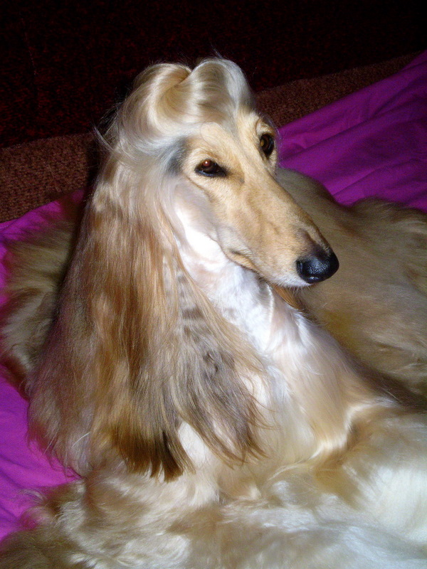 Волосы Афгана такие же как у человека (только чуть тоньше). У них НЕТ подшерстка, пуха и тд... просто волосы и всё! Поэтому в отличае от пуделя (например), которого нужно чесать ежедневно ( а иначе они сваливаются как вата), Афгана купают ОДИН РАЗ В НЕДЕЛЮ и расчёсывают (часа три :P ) и всё! Всю неделю Чойси живёт как и все собаки, ест, пьёт, бегает с моей Доберманочкой... и только раз в неделю я трачу на уход за её шерстью три часа своей жизни. :wink: